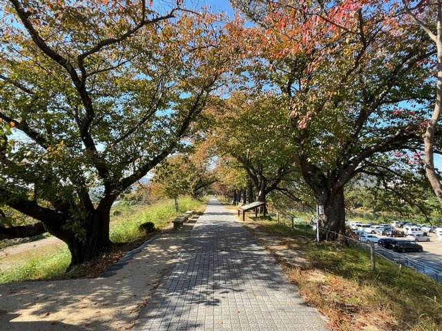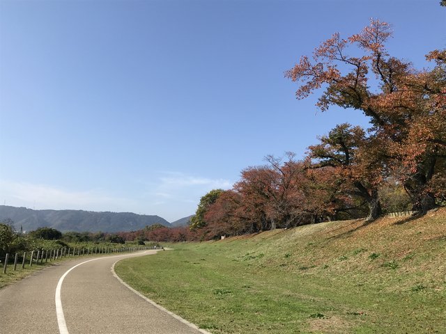 秋は桜並木の紅葉トンネルも☆木津川と宇治川に挟まれた散策道