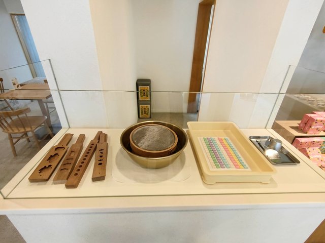 隣には、和菓子造りに使用する木型やUCHU wagashiの人気商品「Drawing(ドロウイング)」が展示されていました。