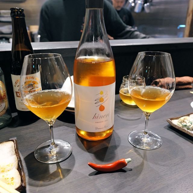 こちらをチョイス。富山にある酒蔵でドメーヌ・ボー謹製「立野原 ひねりオレンジ」¥7700なり。中華なのでこういう濃い目のオレンジワインなんていいんじゃないかと思いまして。どことなく紅茶の香りがフワンと漂う一品で、しっかりコクあり、かなりの辛口設定。こういうお酒を四川料理に合わせることが出来る!と言うだけで我が家的には超点数高し(単なる酒飲みのたわごとですが・・・滝汗)