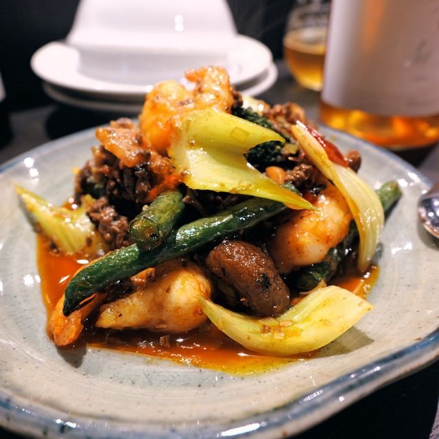 二品目は「ゆえん式四川のエビチリ」¥1760なり。海老を唐辛子やラー油で炒めたミンチ肉、それに玉ねぎ、椎茸、インゲン、セロリなどの野菜と一緒に炒め合わせた結構辛めの一品。ご店主から「この四川式のエビチリが、現在のエビチリの原型なんですよ~」とのこと。これはこれで中々健康的なお味でいい感じですな。