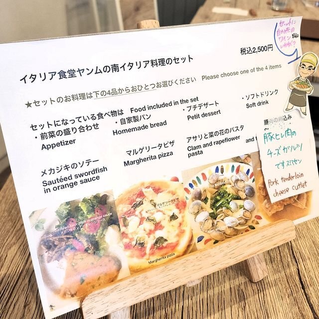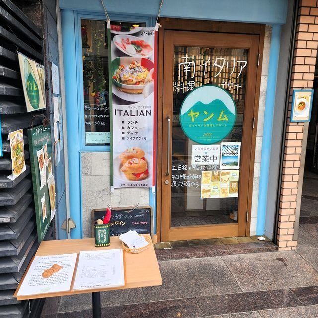 千本今出川交差点の北歩道を西に150mほど進みますと、こういう可愛らしい佇まいのお店が見えてくる。お店の名前は「イタリア食堂 ヤンム」。2022年7月オープンというからコロナ真っ最中!オープンですな。飛び込みなので、開いていますかねえ?と店内に。