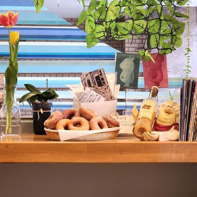 店内は、イタリアの地方都市の地図や出されているメニュー説明などが壁にいろいろ掲示されているのだ。カウンター席の端っこで揚げたてのドーナツの粗熱取りされていて、お土産用?とおもったら後程登場します。頭の中で、ドーナツとイタリアンが全くつながらなかったのですが、揚げドーナツを食べる文化もあるのですな。カフェも名乗られているので、デザート類も色々置かれています。