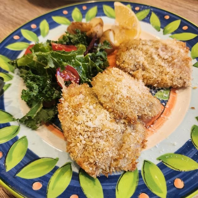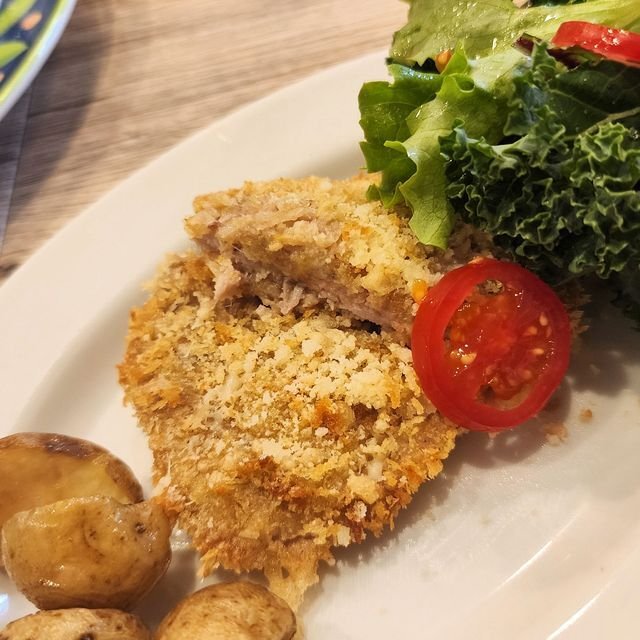 で、お次のメイン料理はこちら。「豚ヒレ肉のチーズカツレツ」なり。¥2500のコースで選べるメインとすると、我が家ではかなり嬉しい一品。チーズの芳香を放つ衣がめっちゃイイ感じ。