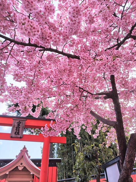 参道をもっと奥へ進んだ先にある弁天社の辺りにも河津桜が咲いていました。