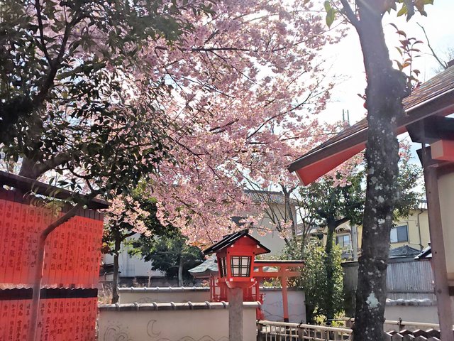 車折神社境内に咲く河津桜