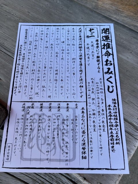 わりと具体的に書かれているのが特徴。今年はボチボチらしい結果(笑)尚、開運推命おみくじは郵送でも授与していただけますので、お寺にお参りできない方は郵送を利用されるといいですね。
