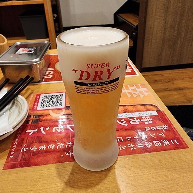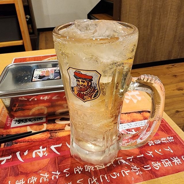 京阪伏見桃山駅からすぐ、大手筋商店街「串かつ めだまや」で、昼飲みランチなり。アサヒスーパードライは290円、串カツは1本90円からとコスパのいい大衆酒場なり。(税別)