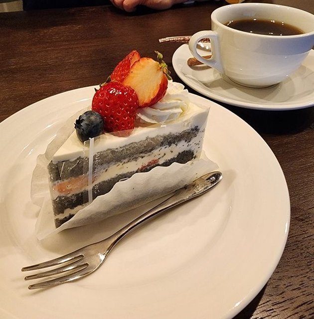 ケーキはれ・れ・れ一押しの竹炭を使ったフルーツショートケーキを注文した相方。一口貰うと、超ふわんふわんで軽やか、こりゃ美味しい。間違いなく、昔ながらの鰻屋さんが扱うデザートレベルではないわけで(笑)