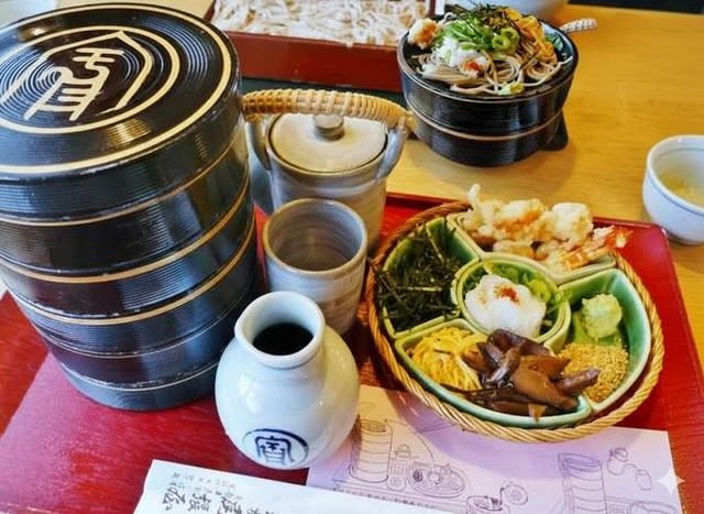 本家尾張屋の名物といえば「宝来そば」。多彩な具材と薬味、そしてこだわりの蕎麦を一度に味わえる、贅沢な一杯でした。