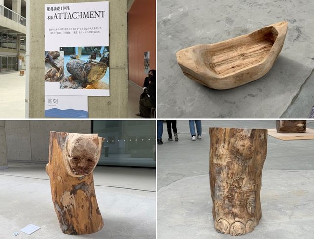 まずお出迎えしてくれたのは彫刻専攻1回生による木彫基礎の作品群です。