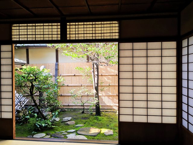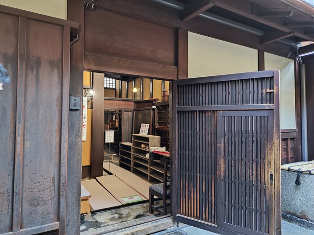 表通りに面している店の部分と裏の居室部分を繋ぐ「表屋造り」で京格子・出格子・犬矢来にむしこ窓と典型的な京町家のたたずまいを残しています。