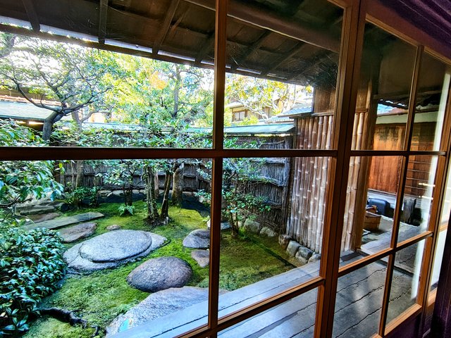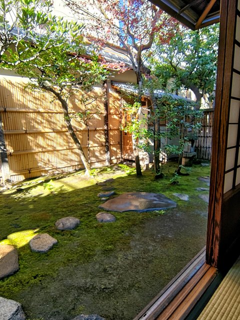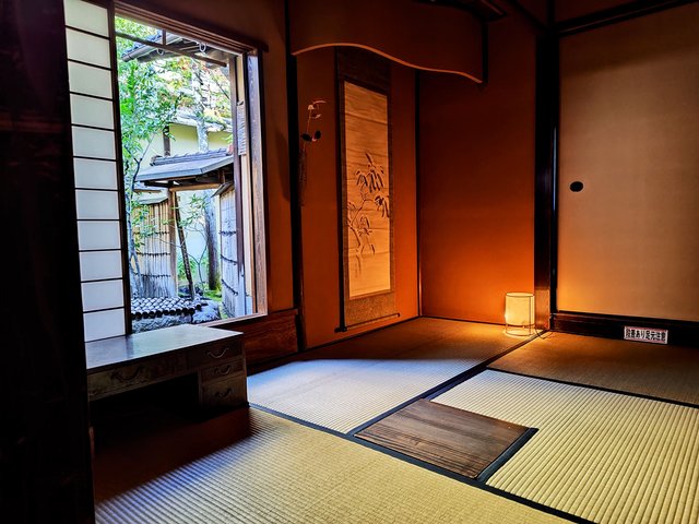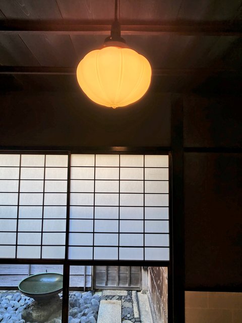 洋間の隣のお部屋は、表通りに面してはめ込まれた細目格子が京町家の情緒を感じさせてくれます。