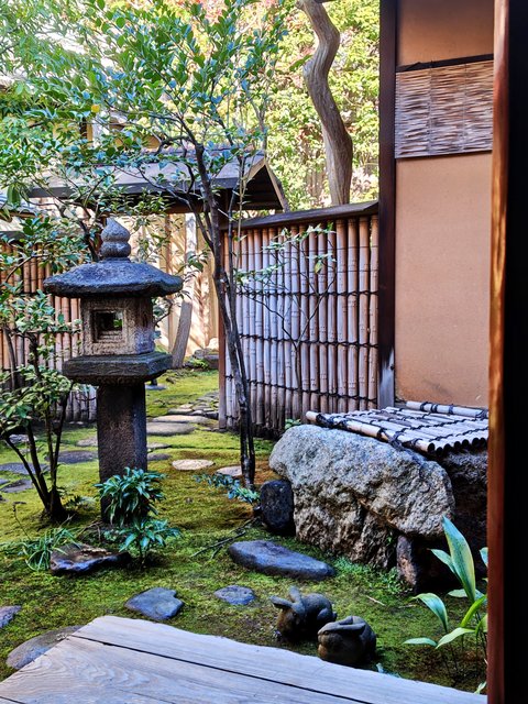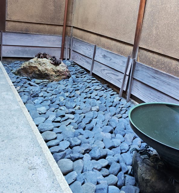 杉本家は浄土真宗本願寺派の熱心な門徒であることから、平らな石(滑り石)が敷き詰められた石庭は、西本願寺白書院の「北の能舞台」をモチーフに作られたと考えられています。