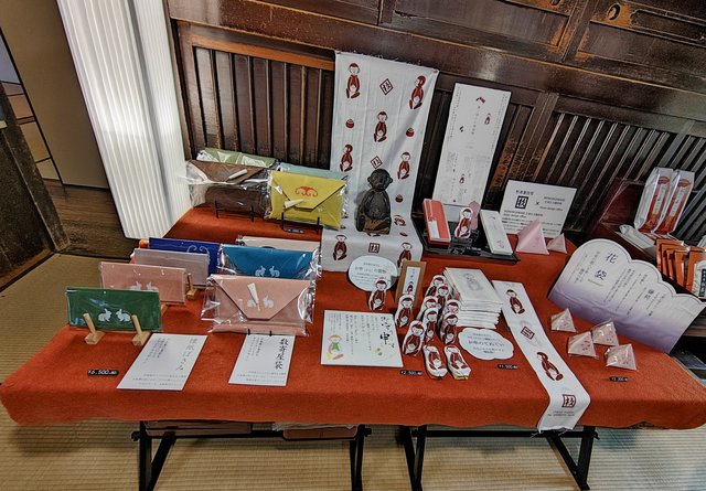 台所に面したお部屋では、奈良屋にちなんだ可愛いグッズやお守りなども販売されています。