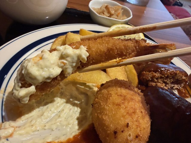 自家製タルタルソースをたっぷり付けていただく海老フライは、サクサクの衣にぷりっとした食感。