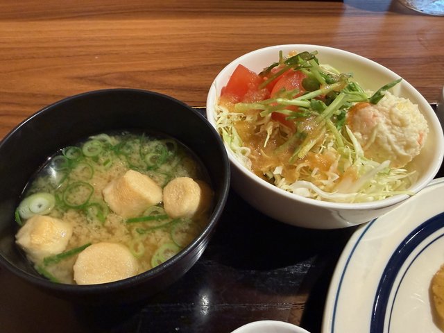 味噌汁は、ねぎと麩のシンプルな具材ながら、出汁がしっかり効いていて、ほっとする一杯。