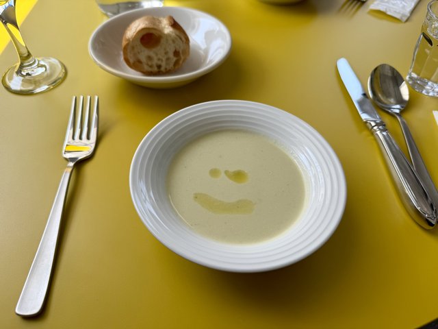 この日のスープは春キャベツ。春らしいやわらかな甘みがあり、オリーブオイルの香りが広がるスープ。丁寧に作られた、ほっとする味わいです。