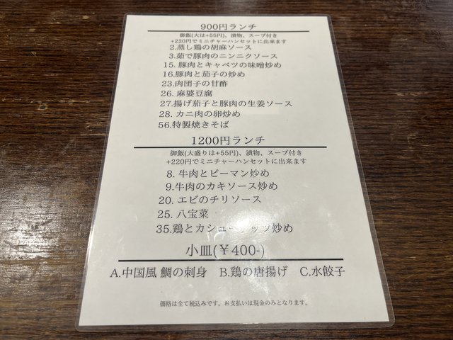ランチは900円、1200円のセットがあり、メイン料理にご飯・漬物・スープが付くセットになっています。さらに+220円でミニチャーハンを付けることもでき、しっかり食べたい人にも嬉しい内容!!