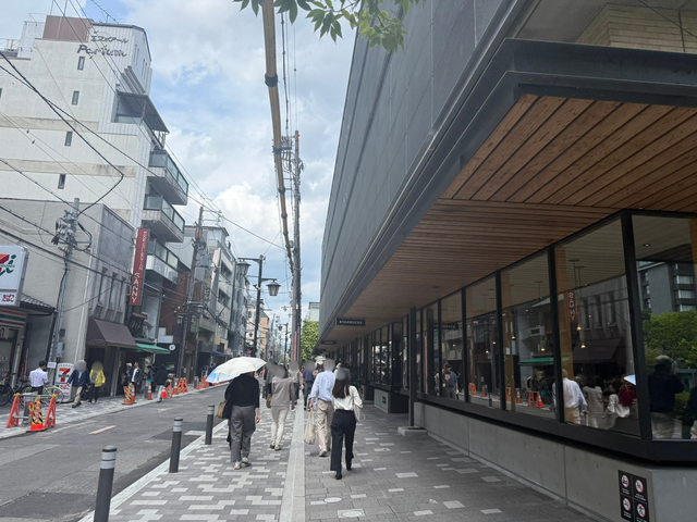 京都の人気店を中心に構成された新商業施設の誕生とあって、初日から近隣店舗の方も驚くほどのにぎわい。市役所北側には落ち着いた良店も多く、人の流れが変われば周辺エリア全体の活性化にもつながりそうです。