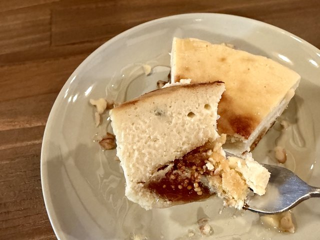 ゴルゴンゾーラのしっかりとしたコクと塩味に、イチジクのやさしい甘さが重なり合う、大人向けのチーズケーキ。ブルーチーズ特有の個性はありつつも主張しすぎず、イチジクのプチプチとした食感が良いアクセントになっています!