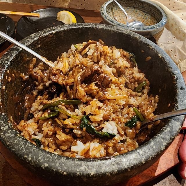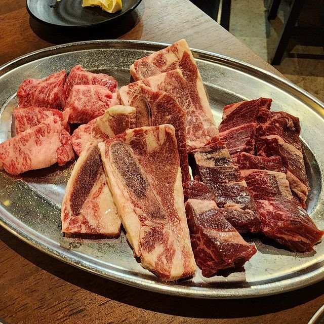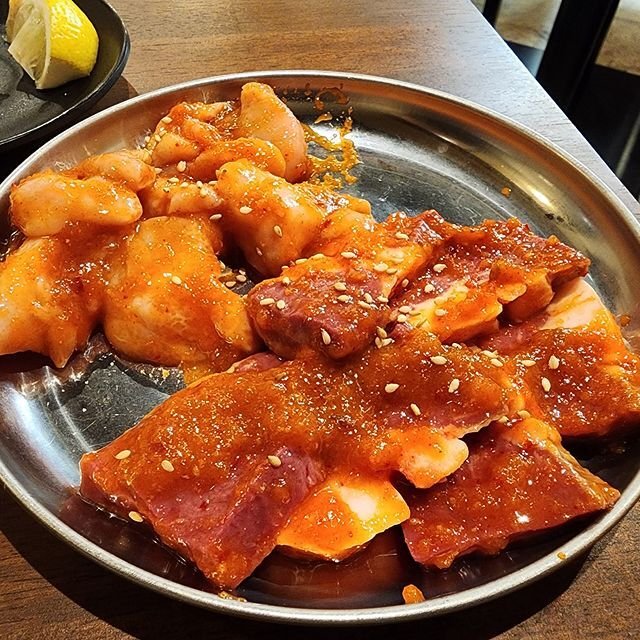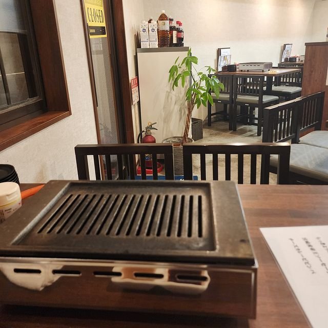お店の名前は「焼肉 竹馬」(ちくば)、当日は朝からずっと雨で結構なザーザー振り。近鉄の高架下から3分ほどの駅近物件なので、助かる訳で。店内に。