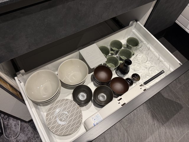 徒歩5分圏内には24時間営業のスーパーフレスコやコンビニもあり、食材を買って部屋で楽しむこともできます。外で食事を楽しんだあと、部屋でゆっくり晩酌という使い方も自然とハマる。食器やカトラリー、食洗機まで揃っているのは滞在型ならでは。