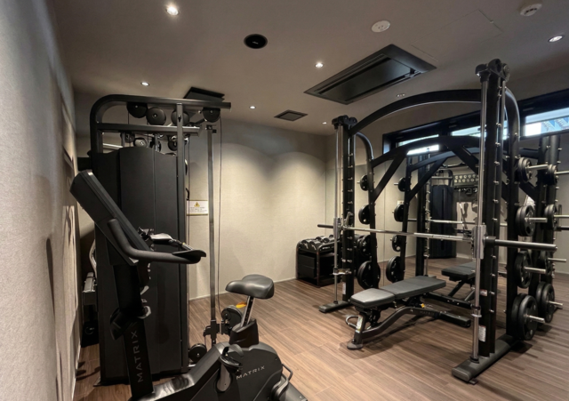 館内にはコンパクトながらジムも完備されており、予約制の貸切利用。他の宿泊者を気にせず、自分のペースで汗を流すことができます。