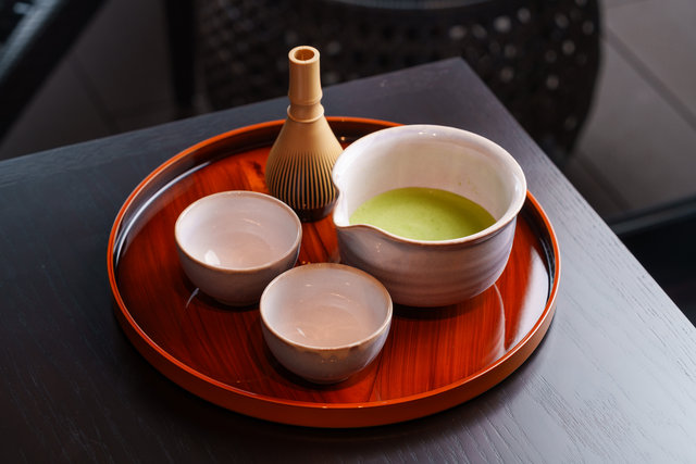 さりげなく用意されたお抹茶も、京都らしい演出のひとつ。