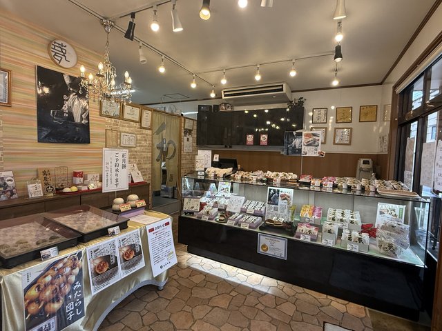 販売スペースの奥が、どら焼きや団子などの製造現場になっており、店内には甘く香ばしい香りが広がります。思わず手が伸びてしまう、そんな空気感です。