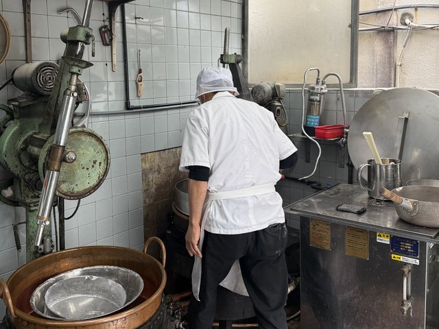 隣の旧店舗スペースでは、和菓子の肝となる餡や餅づくりが行われていました。創業以来、機械や道具を大切に使い続けながら、変わらない美味しさと、時代に合わせた進化の両立を追求されています。