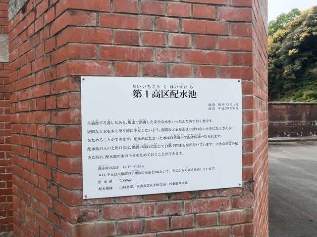 見るからに、かなり古そうなレンガ造り建築。こちらは琵琶湖疏水関連施設として明治45年創設『第1高区配水池』で、琵琶湖疏水の国宝指定に伴い、重要文化財指定に。