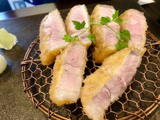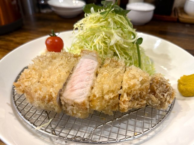 厳選された複数のブランド豚から好みの部位を選べるスタイル。高温と低温のラードを使い分け、じっくりと時間をかけて揚げられたとんかつは、うっすらとピンク色の美しい断面が食欲をそそります。
