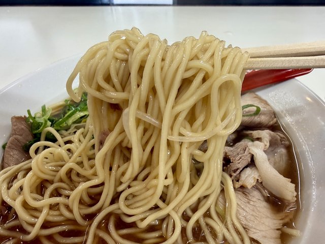 麺は老舗・近藤製麺製。コシのある中細ストレートで麺、パツッとした歯切れの良さがあり、クラシックな醤油豚骨スープと相性抜群。スープと一体となった美味しさです。