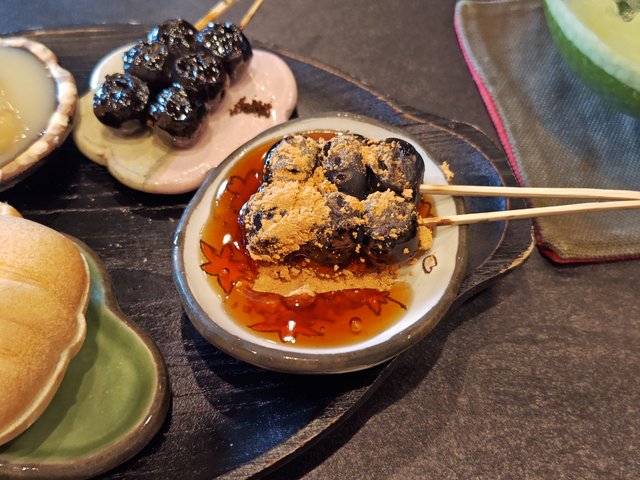 みたらしたっぷりの団子に少しずつきな粉をつけていただきました。