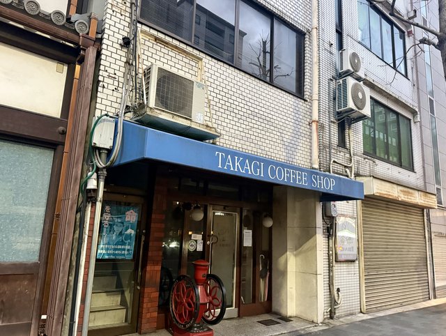 すぐ近く、高辻通を西へ進んだ徒歩3分ほどの場所には「高木珈琲店 高辻本店」があります。京都を代表する老舗珈琲店「イノダコーヒ」出身の3人が共同出資し、1976年に創業しました。