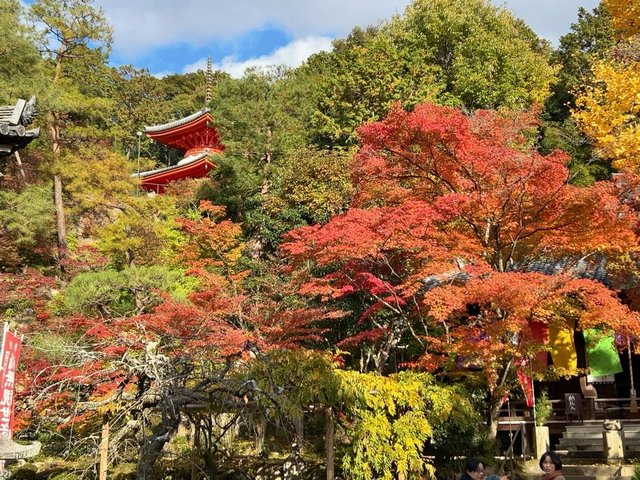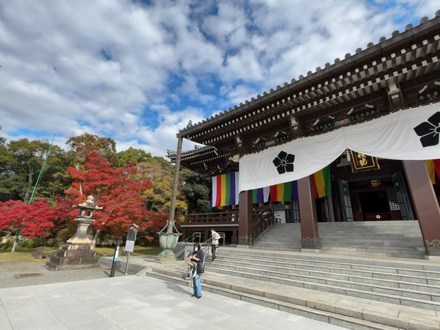 東山区、泉涌寺北の今熊野山の広大な敷地に境内広がる泉涌寺塔頭、真言宗泉涌寺派寺院『今熊野観音寺』。弘法大師ゆかりの地でもあり、複数の名だたる霊場、巡礼地にもなるお寺。自然豊かな山中にあるため、意外と紅葉穴場。この時、かなり紅葉ピークで朱色の医聖堂が錦色と同化。