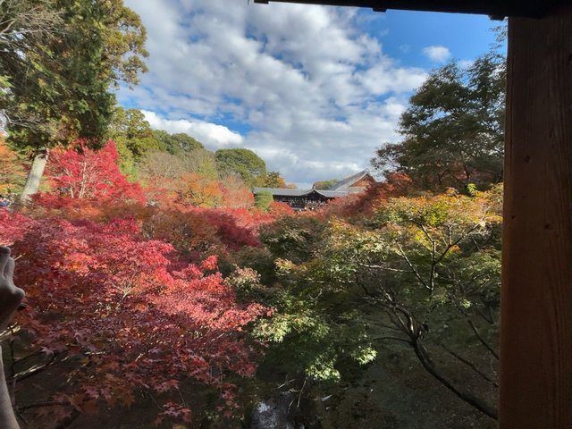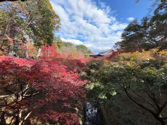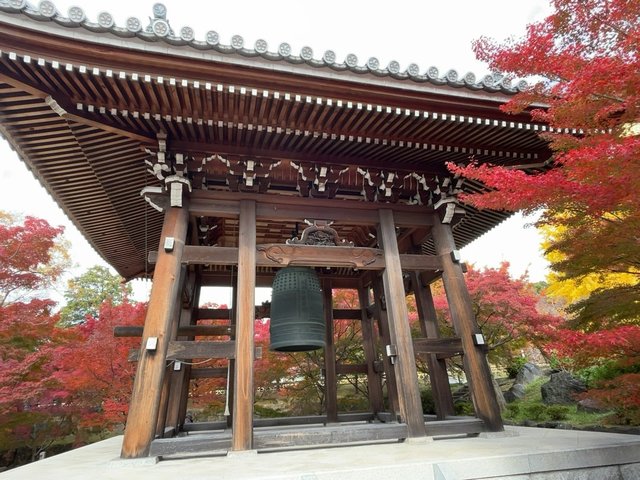 臨済宗東福寺派の大本山『東福寺』。鎌倉時代に九条道家の発願により創建された格式高い禅寺。本堂や三門は代表的禅宗建築で、特に三門は日本最古の国宝建築として知られます。境内には木造橋『通天橋』『臥雲橋』が架かる渓谷「洗玉澗」があり、そこから望む絶景から京都屈指の紅葉名所として知られています。例年であればもっと混雑してる印象ですが、橋上の交通整理スムーズで撮影もしやすかったです。
