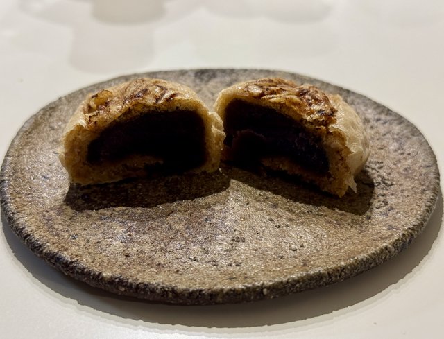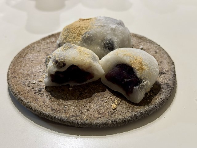 名物の御土居餅は、上品な甘さの餡に塩気は控えめ。赤えんどう豆がごろっと入り、きなこがかかって香ばしさも加わります。素朴ながらも上質さを感じる、贅沢な一品です。