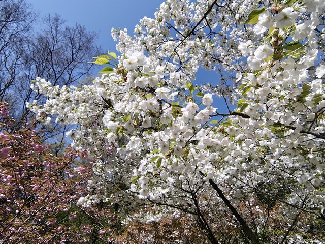 ひときわ目立っていたのが真っ白の花びらが美しい琴平という種類の桜です。