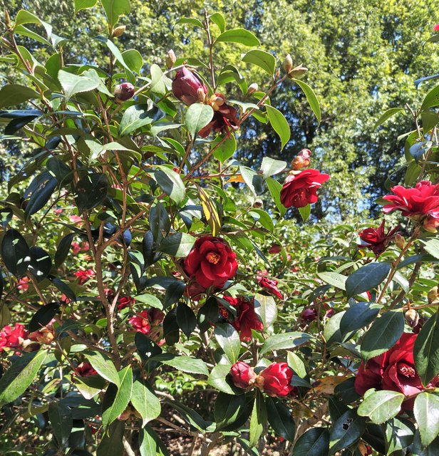 桜品種見本園の西にあるつばき園では、美しく気品あるさまざまな椿が咲いていました。