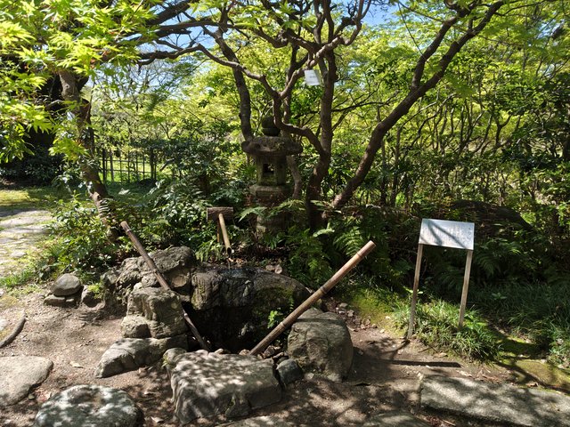 「湧水(ゆうすい)」という名の水琴窟の両側にある2本の竹に耳を近づけると、済んだ心地よい音が聞こえます。