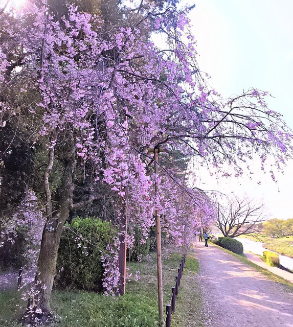 半木の道ではしだれ桜が見ごろとなっていて、まるで桜のトンネルのような美しい景色が楽しめました。