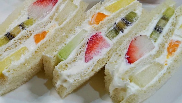 1つめのフルーツサンドは手をクリームだらけにしながら完食しました。