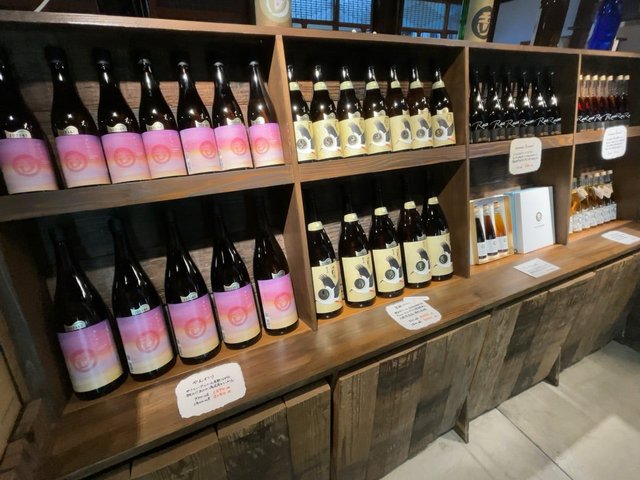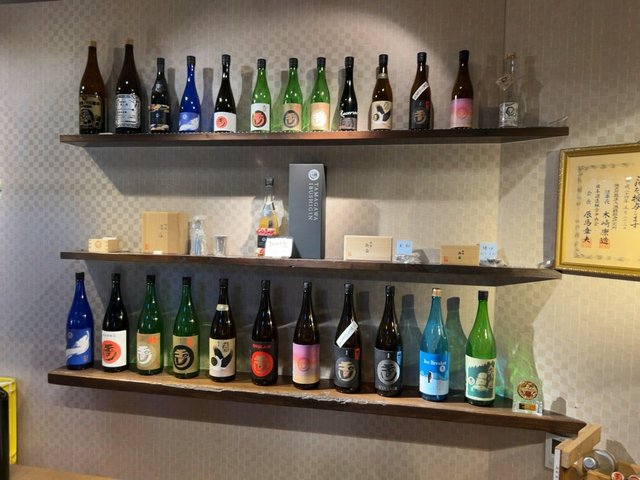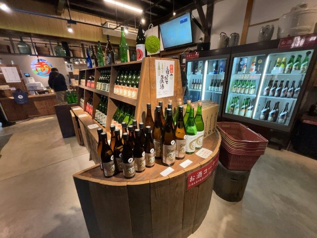 蔵元直営の店内には日本酒がズラリ。とても人気のある酒蔵で、多くの日本酒愛好家が次から次へと来店されていました。