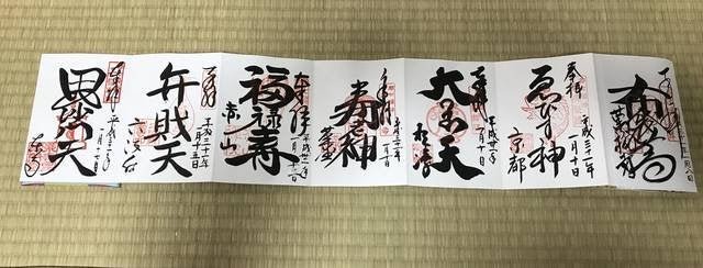 以前、御朱印帳に記帳していただき満願を果たした経験はありましたが、今回は都七福神用の色紙に記帳していただき、部屋に祀ろうと。
