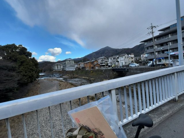 せっせこせっせこ、小雪チラつく極寒の日に、自転車かごに収まりきらない色紙を入れて市内を巡っていたわけで。寒々しい比叡山を背景に。