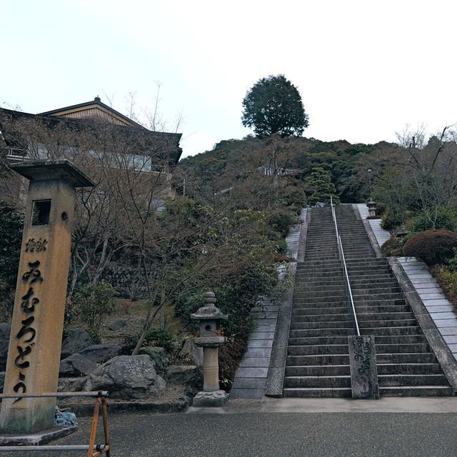 京阪宇治線、三室戸駅から徒歩10分少々歩いた山側にある「三室戸寺」。我々的にはツツジやシャクナゲ、それに紫陽花の名所というイメージなのですが、四季折々の花が咲く名高い花の寺なわけで。最近、山門前にある駐車場の上側斜面を開拓して梅林を造成し、しだれ梅も見られるようになりまして、ワタシは梅見でやってくるのは初めて。今年は2/14から3/22までしだれ梅園が公開されています。入山料¥1000をおさめて境内に。