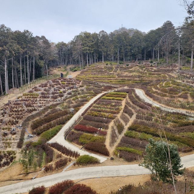 その正面の山の谷あいにあるのが「久留米つつじ園」で、左側の山の尾根沿いを開墾して作ったのが・・・