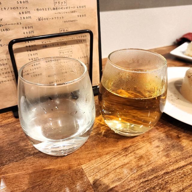 で、ワタシは香るエールがこのお値段とは嬉しいな!ということで「生ビール」¥580を、相方は「グラススパークリング」¥680を注文。と!ご店主からオープン記念でネット予約の方は1杯目は無料にさせてもらってます~!とお店におごってもらったのだ。超ニッコリ。