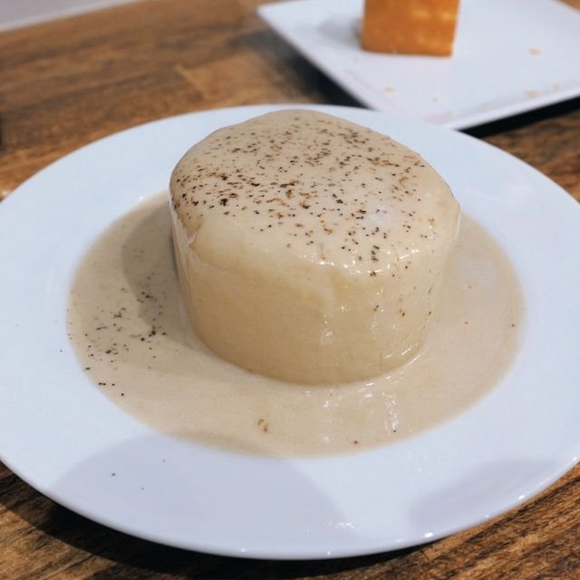 最近、あちこちで似たメニューを見る「コンソメ大根 ポルチーニソース」¥680なり。イタリア風おでん!ですが、そもそもベースにしているコンソメ大根がしっかり味が染み込んでいて美味しい。ソースはクリーミーで滑らか、チョイ緩め設定ですが、この季節ピッタリかも!と思いつつ。